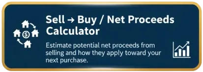These tools help you estimate what you may net from selling your current home and how that equity could apply toward your next purchase.